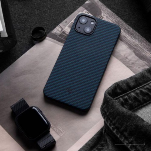 - Чехол Pitaka MagEZ Case для iPhone 13, черно-синий, кевлар (арамид)