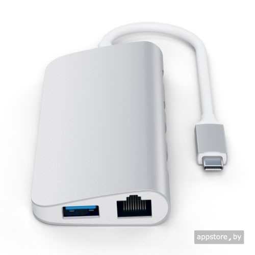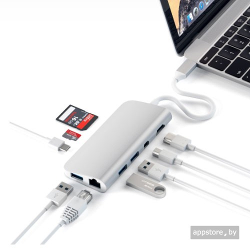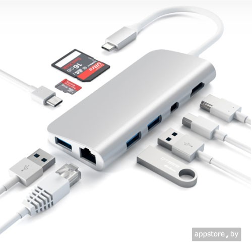 Адаптер Satechi Aluminum Type-C Multimedia Adapter добавляет множество подключений к вашему ноутбуку или настольному компьютеру, просто используя один порт Type-C. Добавьте 4K HDMI, 4K mini DisplayPort, сквозную зарядку, Ethernet, три порта USB 3.0 и слоты для SD и Micro SD карт