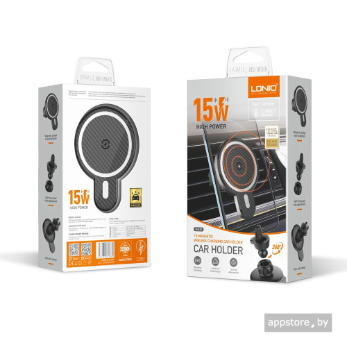 - Автомобильный держатель магнитный LDNIO MA20 с беспроводной зарядкой Magsafe 15W, 360`