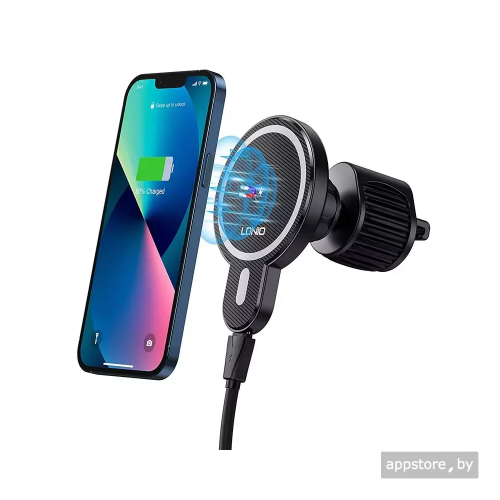 Беспроводное автомобильное зарядное устройство LDNIO MA20 для iPhone с поддержкой технологии MagSafe позволяет удобно разместить смартфон в удобном для обзора месте на решетке дефлектора. Минималистический дизайн и компактный дизайн, универсальная совместимость одновременно с функцией беспроводной зарядки делают его не незаменим в пути.