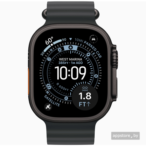 Большой, 49 мм, яркий и всегда включенный дисплей Retina. Настраиваемая боковая кнопка.