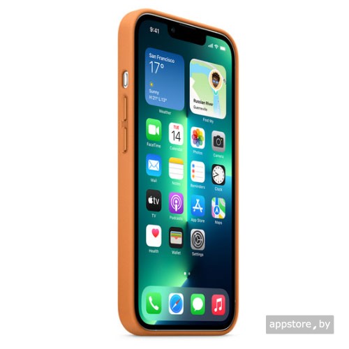 - Оригинальный кожаный чехол MagSafe для iPhone 13 Pro, цвет «золотистая охра»
