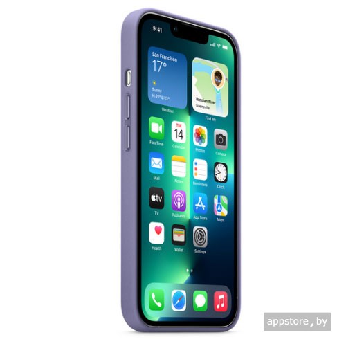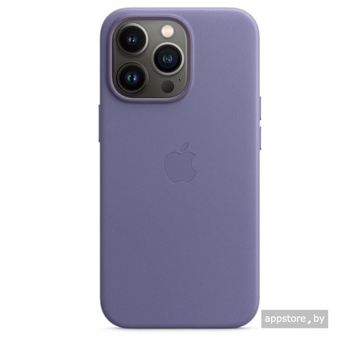 - Оригинальный кожаный чехол MagSafe для iPhone 13 Pro Max, цвет «сиреневая глициния»