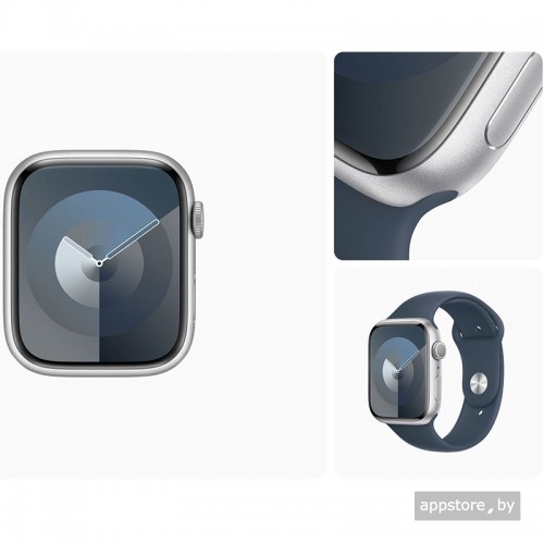 Watch Series 9 GPS 45 мм Корпус из алюминия серебристого цвета, синий спортивный ремешок M/L