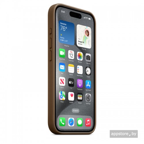 Чехол FineWoven Case MagSafe изготовлен из прочного микротвила, напоминающего мягкую замшу.