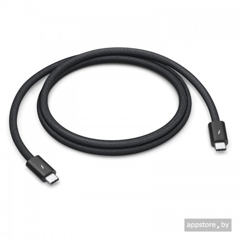 Оригинальный кабель длиной 1 метр со специальной чёрной оплёткой, которая предотвращает запутывание при сматывании. Поддерживает передачу данных Thunderbolt 3, Thunderbolt 4 и USB 4 со скоростью до 40 Гбит/с, передачу данных USB 3 со скоростью до 10 Гбит/с, видеовыход DisplayPort (HBR3), и зарядка до 100 Вт.