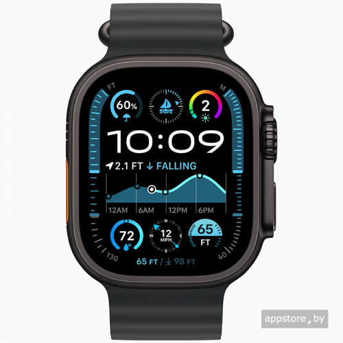 Watch Ultra 2, GPS + Cellular, 49 мм, корпус из титана черного цвета, ремешок Ocean черного цвета, MX4P3LW/A